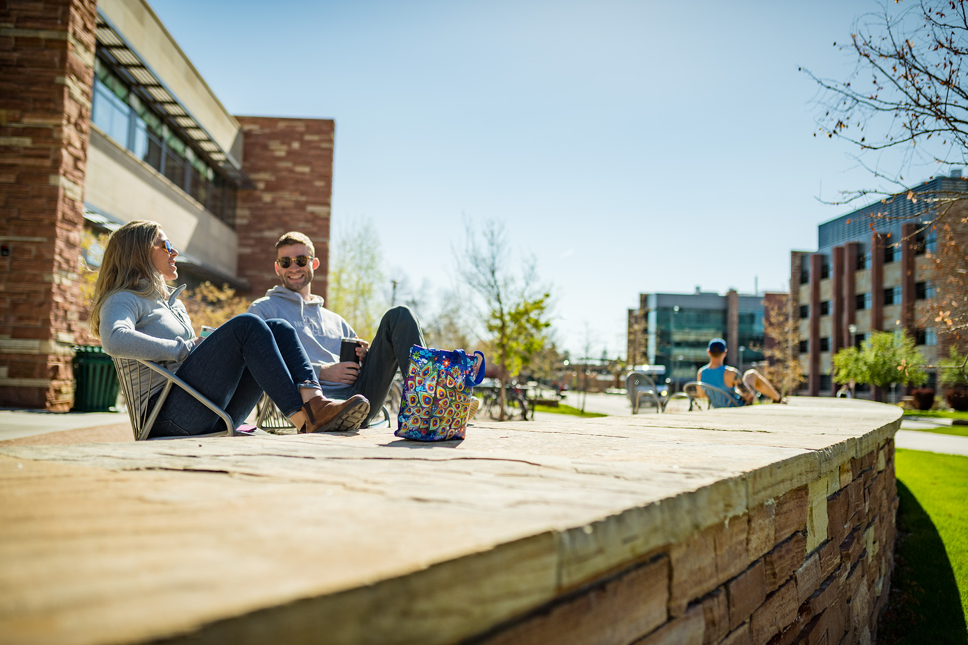Students enjoying the warm spring morning outside the Behavioral Sciences building, May 3, 2019.